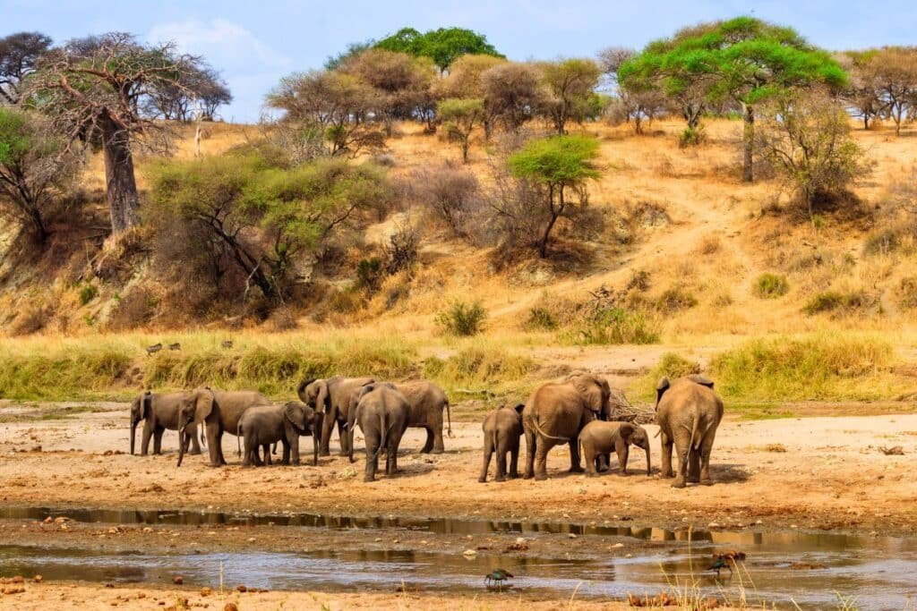 Kick off your safari with a drive to Tarangire, one of Tanzania’s most underrated parks. The park is famous for its enormous elephant herds, massive baobab trees, and tree-climbing pythons (yes, really).