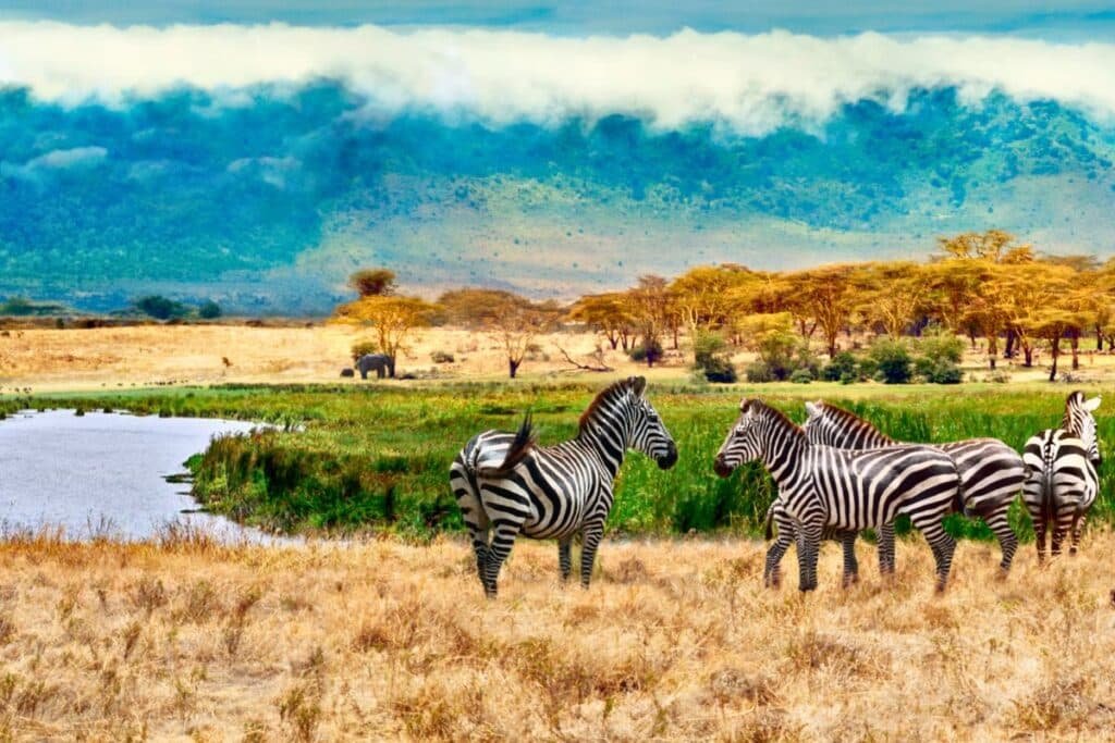 Ngorongoro Crater sits within the Ngorongoro Conservation Area, about 180 kilometers west of Arusha in northern Tanzania. It’s the largest unbroken, unflooded volcanic caldera on Earth — a geological wonder that drops roughly 600 meters from rim to floor.