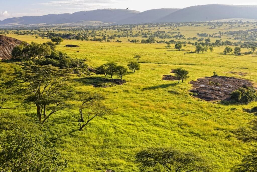 Scenic drive through the highlands and into Serengeti plains